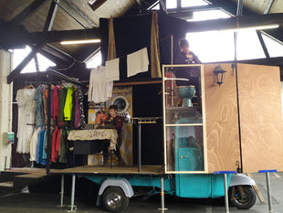 Un triporteur représentant une laverie mobile : un huis-clos où 7 personnages vont se rencontrer.